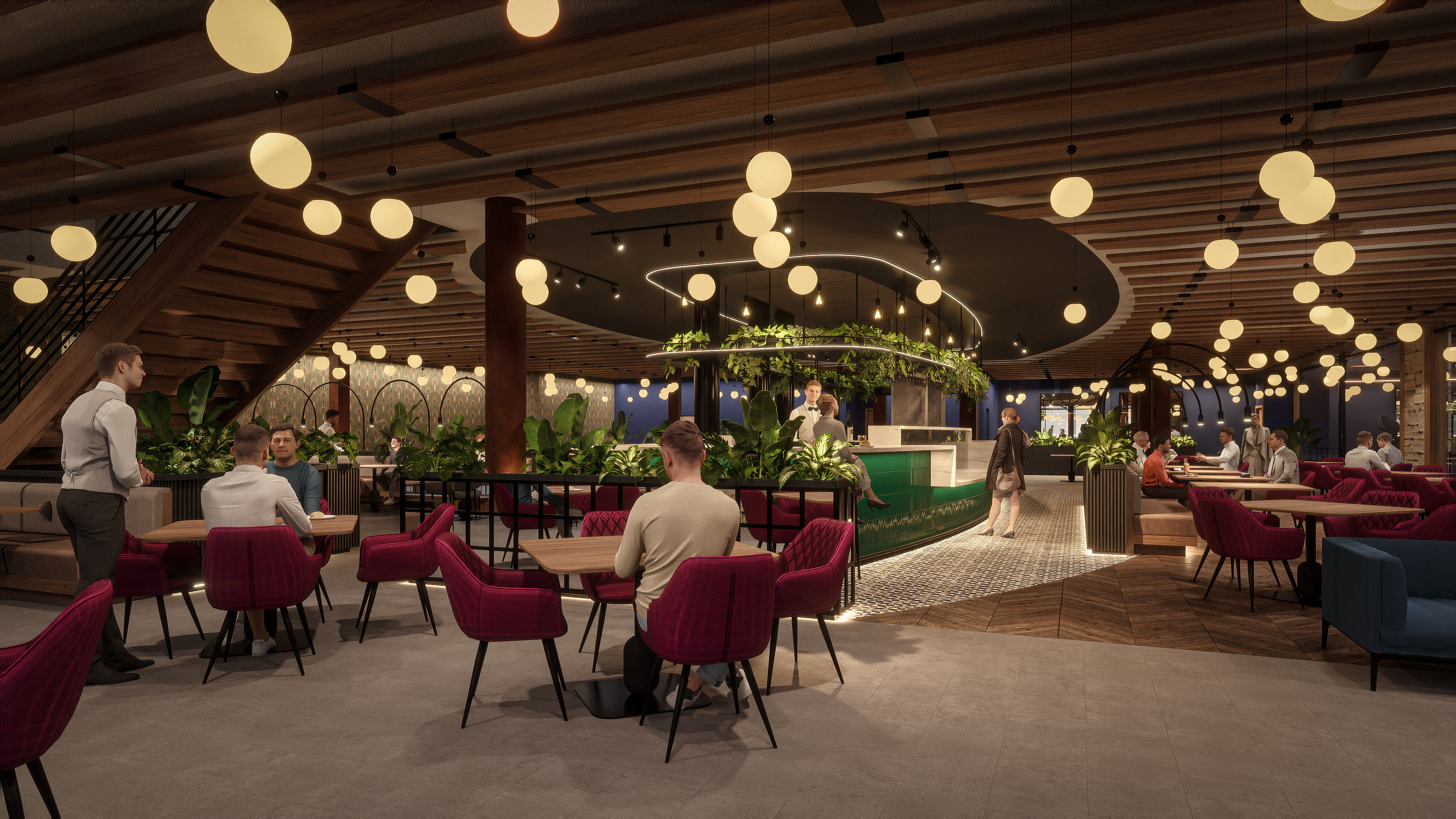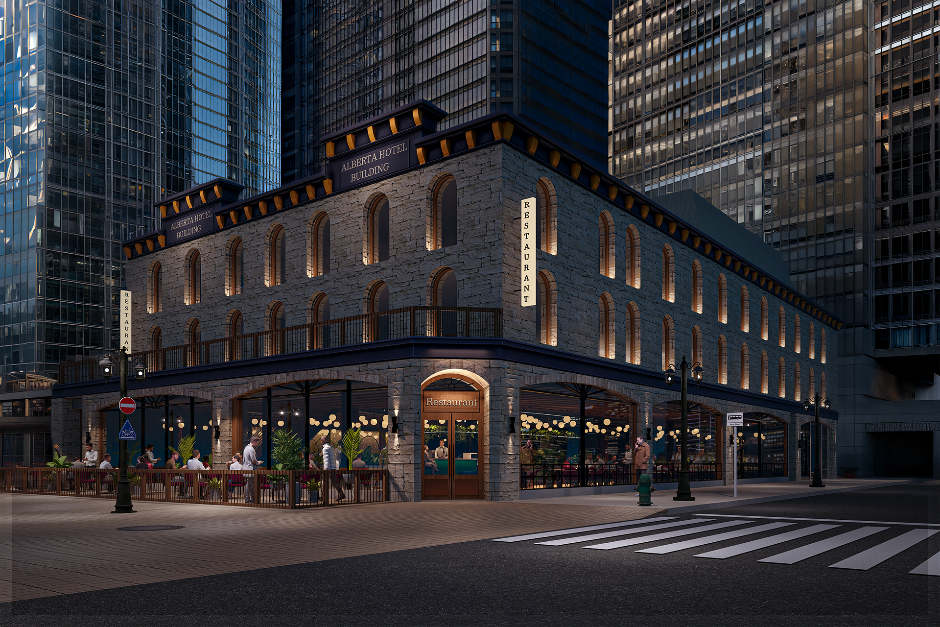 This project involved the conceptual design and full visualization of a modern restaurant located inside Calgary’s historic Alberta Hotel Building. The challenge was to blend the warmth and vibrancy of a contemporary dining space with the elegance and history of the original stone façade. I led both the interior design proposal and the entire rendering process, from lighting and materials to final post-production. I worked closely with stakeholders to ensure the space aligned with the brand vision and supported a high-end, welcoming guest experience.